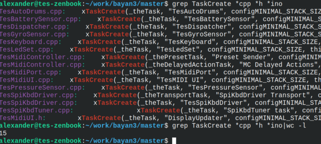 Вот сегодня, например, я перевел на FreeRTOS-ные рельсы модуль драйвера SPI клавиатуры (т.е. клавиатуры, которая умеет присылать нажатия с измеренной velocity). А основная логика, включая автоаккомпанемент, продолжает нормально работать по-старому.