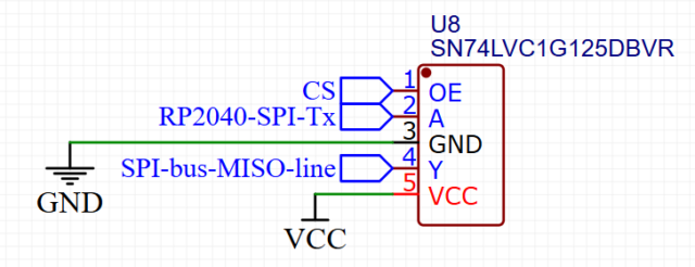 Если этот буфер не добавлять, то Rp2040 не даст остальным SPI-slave устройствам, подключенным к той же SPI шине, нормально обмениваться данными. Даже если одно из этих «остальных» SPI-slave устройств — это ещё один RP2040.